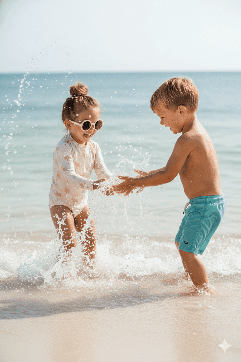 As crianças são totalmente artificiais e não correspondem a pessoas reais, alinhado com as práticas de segurança de IA.